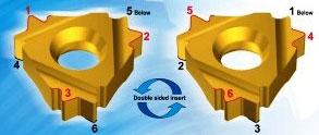 The new V6 thread turning insert from Vargus offers revolutionary gains in productivity as well as tremendous savings in tooling costs with its six-cutting corner system. Doubling the number of corners of conventional systems from 3 to 6, V6 has the ability to halve users' tooling costs by enabling all six corners to be applied to the same application, using existing toolholders. |