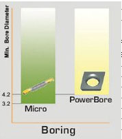 microscope 的单边,以及双边的镗孔刀具,最小可加工2mm 的孔径, 同时最小4.2mm的孔径可以采用可换刀片的 Powerbore 产品线。 |