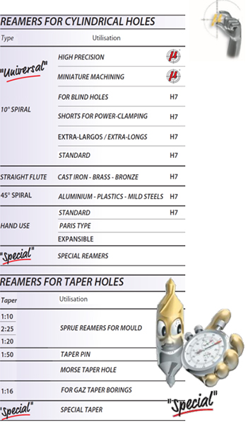 我们可以提供任何尺寸和公差及不同材料的铰刀: